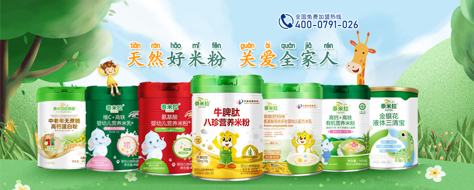 泰米拉是江西倍川食品有限公司旗下的品牌,主要是做婴童辅食品,包括米粉.米乳.营养米粉等,研发、生产为一体的现代企业,做出让妈妈们放心的产品。精心选材、精确配比、均衡搭配,给宝宝细心的喂养与呵护。同时倡导"营养+培养"理念,帮助宝宝健康、聪明,笑容绽放。