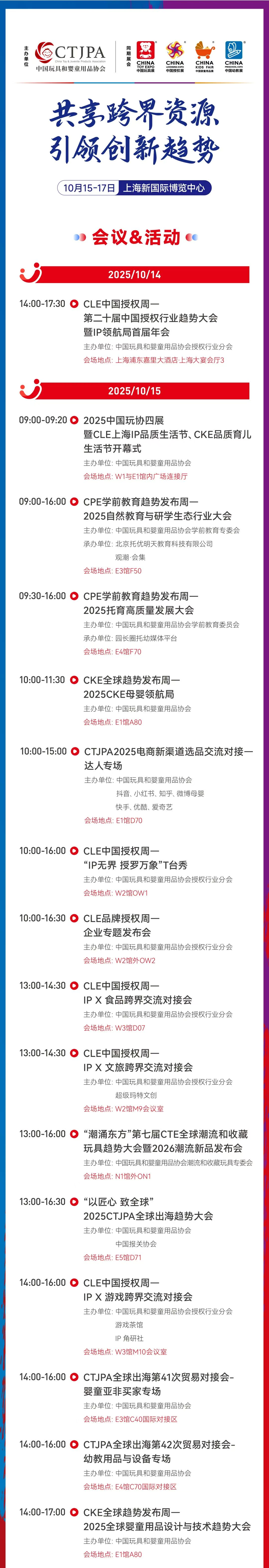 10月15日至17日,CTE中国玩具展&潮玩展、CLE中国授权展、CKE中国婴童用品展、CPE中国幼教展(简称中国玩协四展)将在上海新国际博览中心举办。