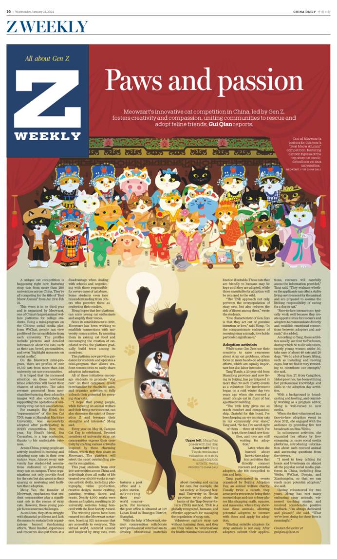 喵扎特在《中国日报》China Daily的报道