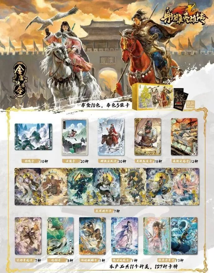 10月20日,卡游推出“金庸侠客令 射雕英雄传(下)” 卡牌。该卡牌系列特邀多位知名画师合作,以笔墨丹青风格新绘《射雕英雄传》内容,包含 11 种稀有度的百余款卡牌。卡牌用不同画风呈现书中帝王、乞丐、邪派、正派等各类角色,展现江湖侠义,助力消费者领略武侠世界的快意恩仇。(卡游)