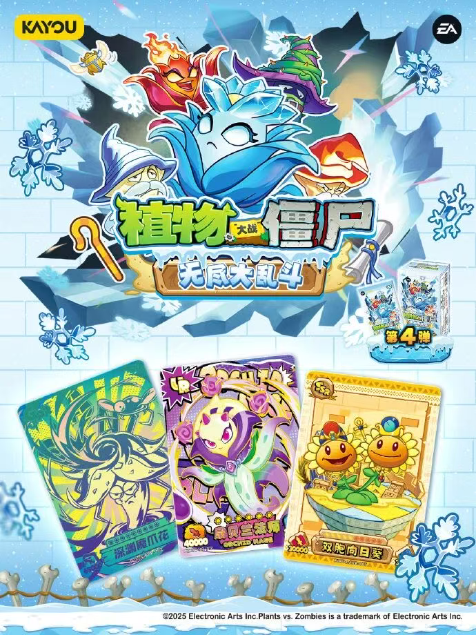 10月20日 ,卡游宣布植物大战僵尸 “奇妙自然之旅 无尽大乱斗” 第 4 弹卡即将正式上线。该弹卡牌包含全新原画的深渊海葵、深渊魔爪花 GPR 卡牌,魔法番红花、扇贝兰法师 UR 卡牌,以及横板 SSR 埃及僵尸博士、獠牙征服者卡牌;产品规格为 3 张 / 包、36 包 / 盒。(卡游)