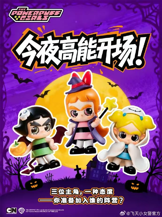 10月17日,飞天小女警官方宣布与 CiCiLu 合作推出万圣节联名手办。该联名手办包含女巫花花、幽灵泡泡、恶魔毛毛三款造型,对应三种不同画风,以飞天小女警三位人气角色为核心打造全新万圣形象,邀请消费者加入奇幻万圣夜相关场景体验。(飞天小女警)