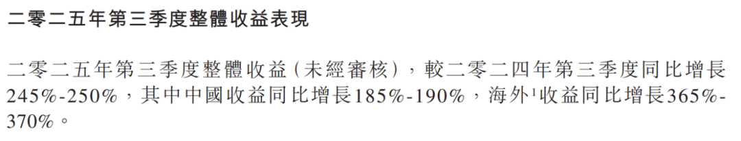 泡泡玛特的全球化成果尤为显著。财报显示,其海外市场增速高达365%-370%。