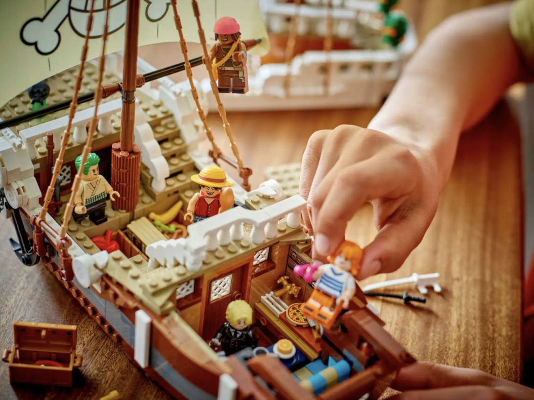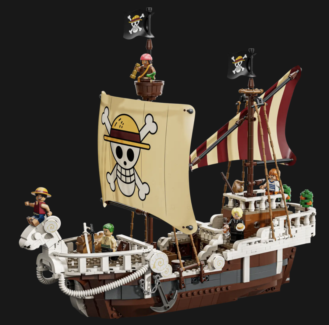 这款由 1376 个零件组成的精美模型,是《海贼王》粉丝与建筑玩具爱好者的收藏佳品。海盗船还原了多个经典内部空间,包括船员舱、厨房、储藏室与配件工作坊,甲板上还贴有四张 “通缉令” 海报,细节拉满。套装附带 5 个乐高海贼王小人偶,分别呈现路飞坐在船头绵羊雕像上(下方配有大炮)、索隆在甲板上训练、娜美操控船舵(身旁有她喜爱的橙子树)、乌索普爬上桅杆警戒、山治从楼梯搬运锅具至厨房的经典场景。船只模型尺寸可观,高度超 13.5 英寸(34 厘米),长度 15.5 英寸(39 厘米),宽度 8 英寸(20 厘米),兼具把玩与展示价值。