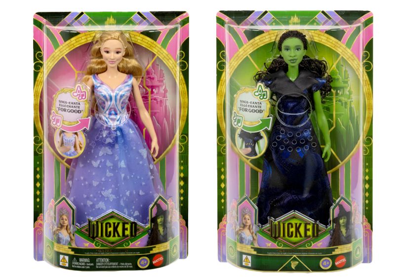 灵感源自环球影业电影《魔境危机》系列,《魔境危机 2:艾普丽莎的歌唱娃娃》赋予孩子们解锁内心魔法的勇气。邪恶女巫艾普丽莎身着还原电影设定的无袖拖地长裙,搭配标志性绿色皮肤与修长辫子,完美复刻银幕形象;而格林达唱歌娃娃则以淡蓝色蝴蝶纹连衣裙与闪亮金发亮相,尽显优雅气质。按压娃娃躯干的按钮,即可聆听英文版经典歌曲《为了永远》的精彩片段,传递真挚友谊的力量。
