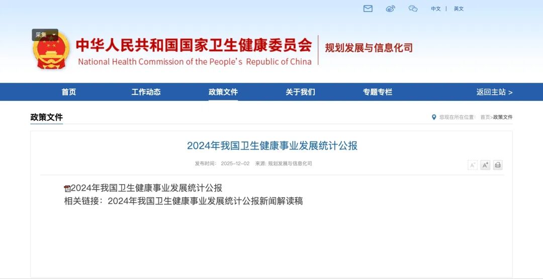 12月2日,国家卫生健康委发布《2024年我国卫生健康事业发展统计公报》(以下简称《公报》)。《公报》显示,2024年我国人口发展、托育服务与妇幼健康事业持续推进,老年健康医养结合服务体系不断完善。