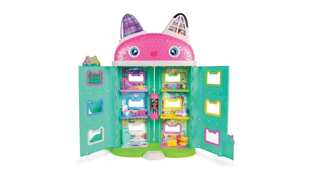 2 英尺高的玩具屋,内置六种游戏模式和七个主题房间,还配备了猫电梯、滑梯、Paw Bump 魔法按钮,以及电影同款启发音乐。玩具的液晶眼睛可呈现出不同的表情与反应,依托热门动画《盖比的娃娃屋》IP 打造,高度还原了动画中的经典场景与角色,且具备强互动属性,精准匹配了动画受众儿童的玩乐需求。