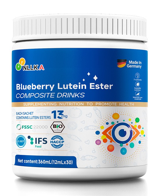 纽力康蓝莓叶黄素酯复合饮液,每袋包含蓝莓粉、β-胡萝卜素、叶黄素酯、姜黄素、维生素B2等多种营养素,专注补充眼部所需营养,可与其他矿物质一起补充,安全性高,无刺激,不拮抗。